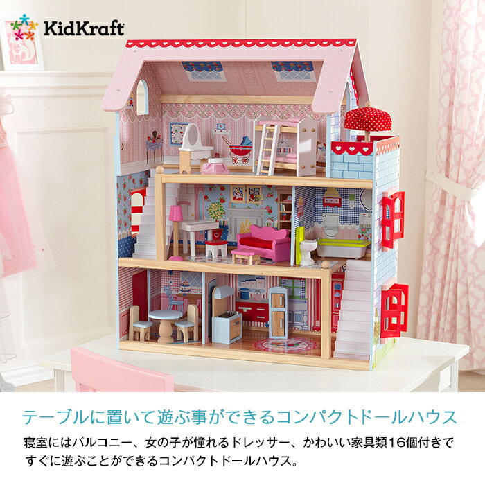 【すぐに遊べるおもちゃ16点付き】 KidKraft チェルシードールコテージ <代引不可> 木製 おままごと キッドクラフト クリスマス プレゼント 女の子 男の子 子供 ドールハウス キッチン おままごと