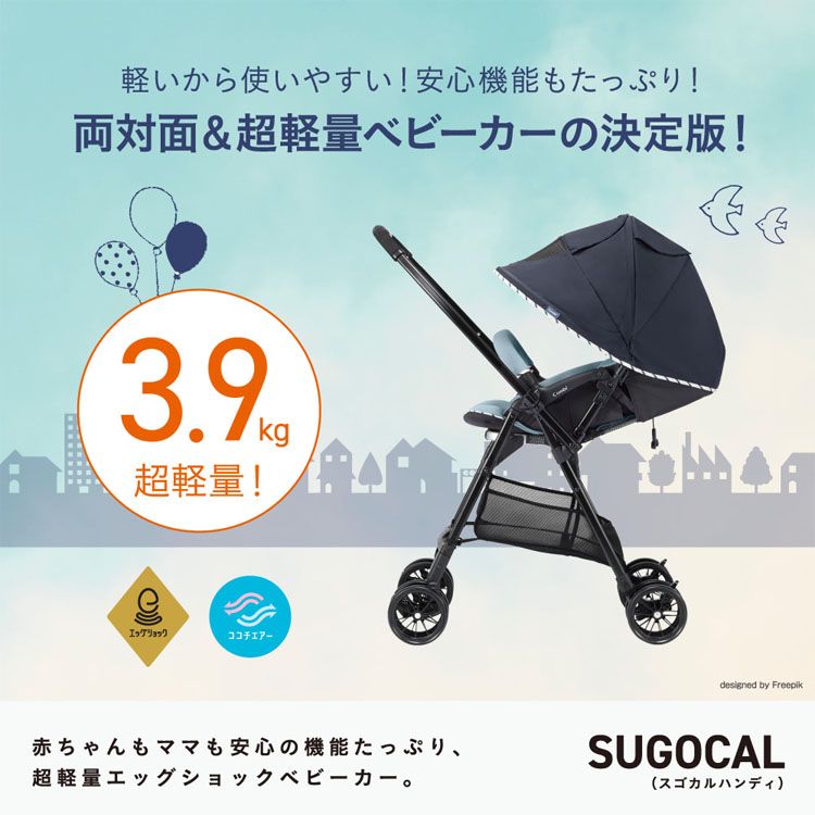 軽いから使いやすい!安心機能もたっぷりな両対面&超軽量(3.9kg)ベビーカー。