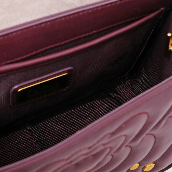 ゴールドのバタフライがワンポイントのキルティング加工のショルダーバッグです。